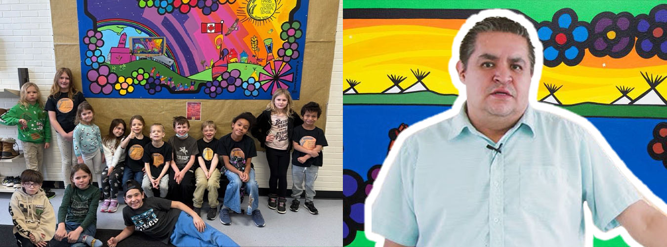 Students at Harris-Tessier Central School recently collaborated with Kevin Pee-Ace, an Indigenous artist from Saskatoon, to create a beautiful mural in their school.